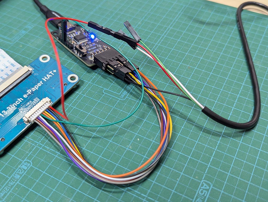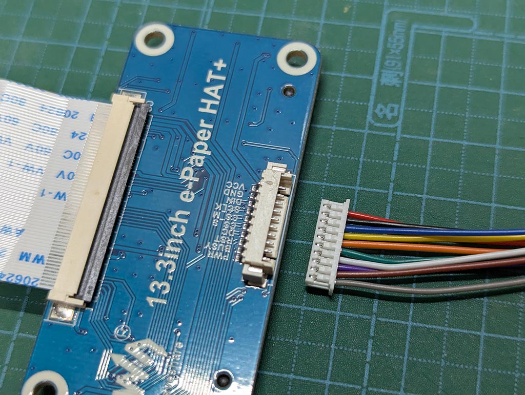 Waveshareの資料を見ると3.3V/1A以上の電源を推奨と書かれていました。(https://www.waveshare.com/wiki/13.3inch_e-Paper_HAT+_(E)_Manual#Resources )