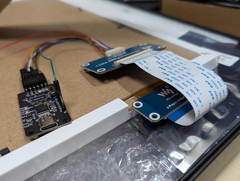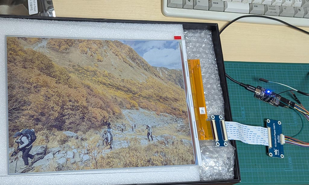 前回、PCからUSB-SPI変換基板を通じて3.5インチ(4色)の電子ペーパーモジュールに画像を表示できました。