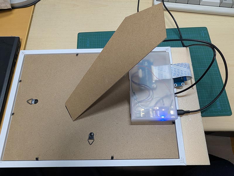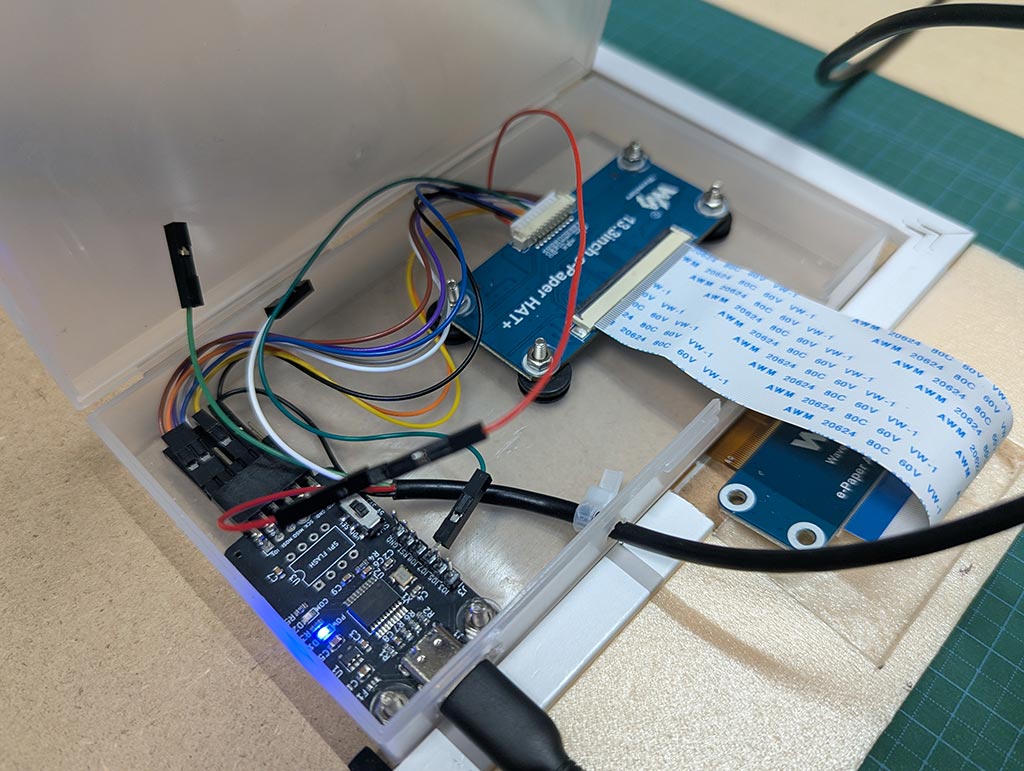 ただし電子ペーパーパネルはA4よりも若干長辺が短いので窓からフィルム基板部分が見えてしまいます。この辺りは後でカバーでも作りましょう。